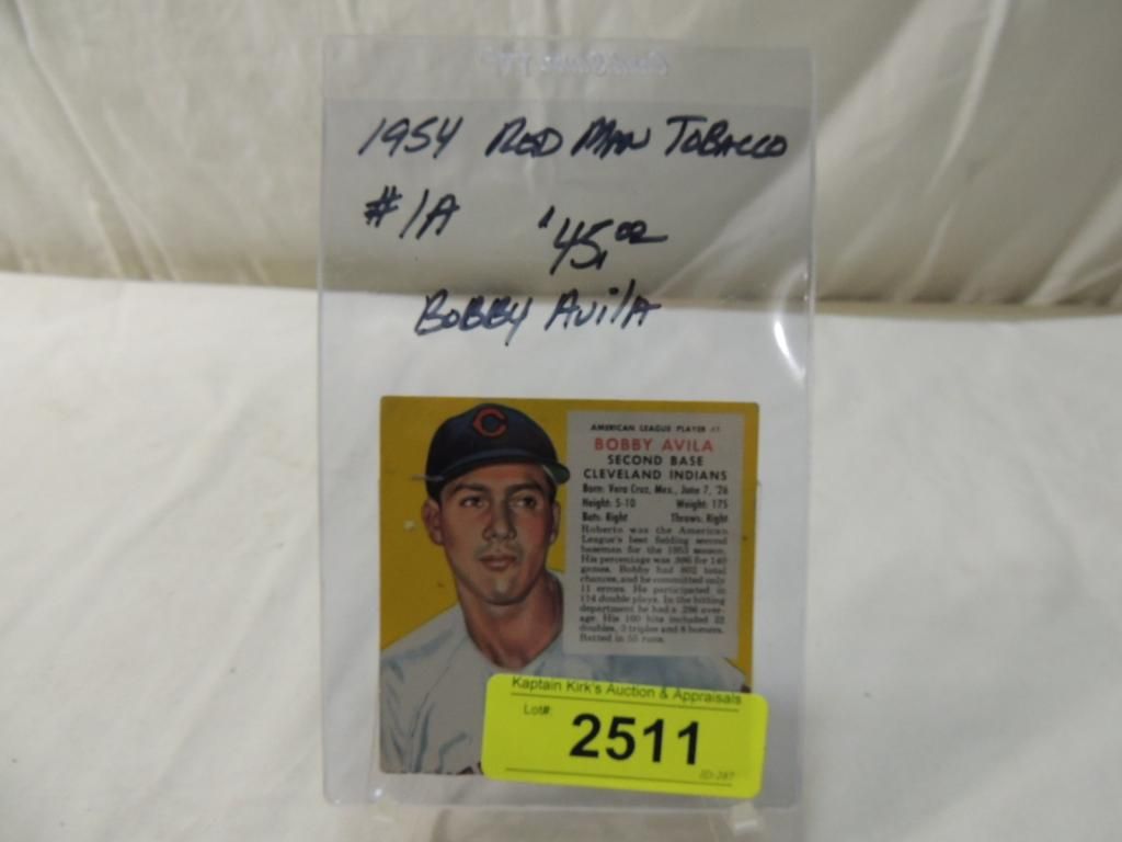 1954 RED MAN TOBACCO BOBBY AVILA 1A BASEBALL CARD. BASEBALL COLLECTIBLE. VINTAGE CARD. GOOD CONDITION. IN PLASTIC SLEEVE. AS SHOWN. SEE PHOTO FOR MORE DETAILS.