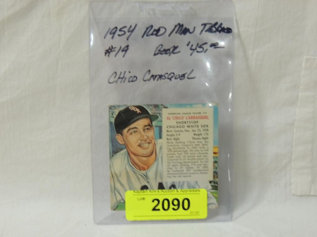 1954 RED MAN TOBACCO BASEBALL CARD. BASEBALL COLLECTIBLE. VINTAGE CARD. GOOD CONDITION. IN PLASTIC SLEEVE. AS SHOWN. SEE PHOTO FOR MORE DETAILS.