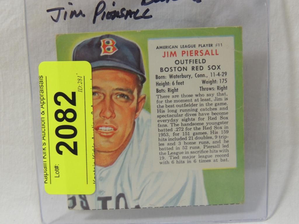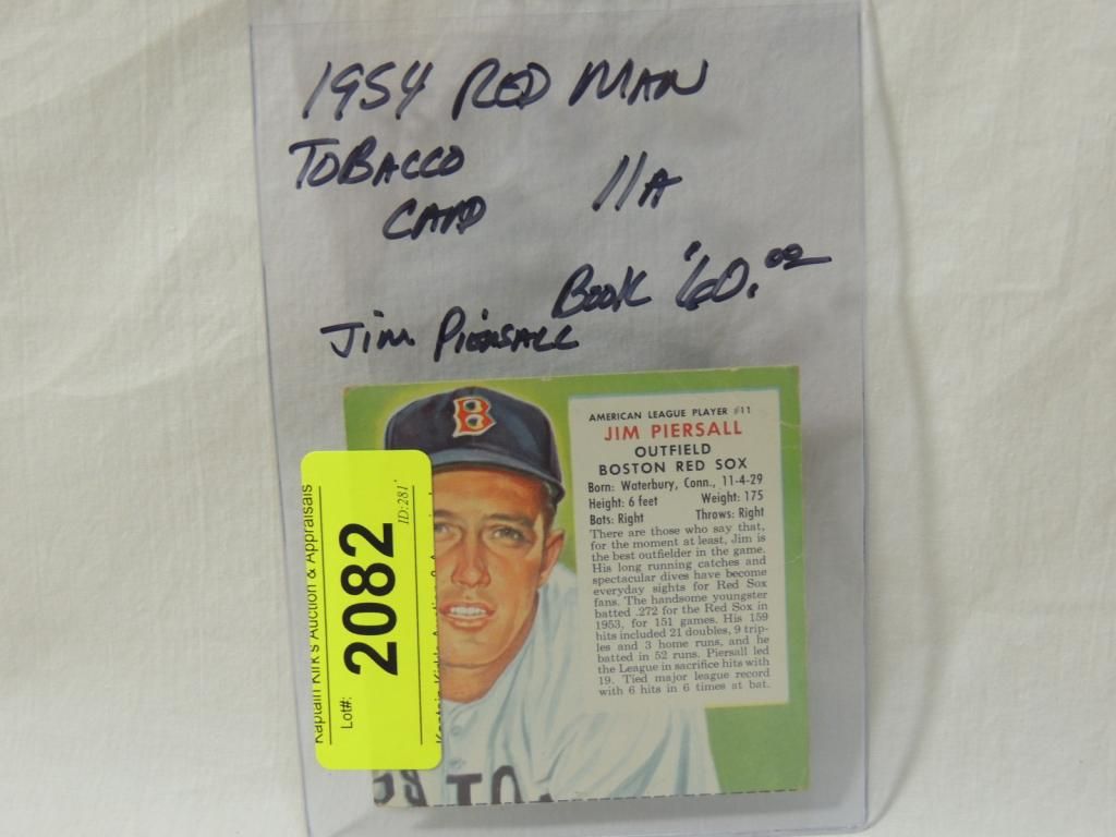 1954 RED MAN TOBACCO JIM PIERSALL 11A BASEBALL CARD. BASEBALL COLLECTIBLE. VINTAGE CARD. GOOD CONDITION. IN PLASTIC SLEEVE. AS SHOWN. SEE PHOTO FOR MORE DETAILS.