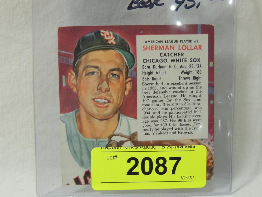 1954 RED MAN TOBACCO SHERMAN LOLLAR 5A BASEBALL CARD. BASEBALL COLLECTIBLE. VINTAGE CARD. GOOD CONDITION. IN PLASTIC SLEEVE. AS SHOWN. SEE PHOTO FOR MORE DETAILS.