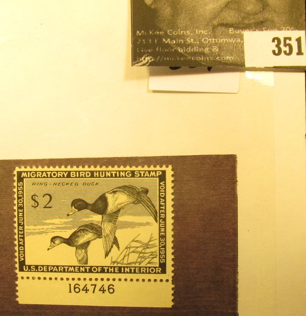 1954 RW21 Federal Migratory Waterfowl $2 Stamp, LH, Unsigned, with pane number.