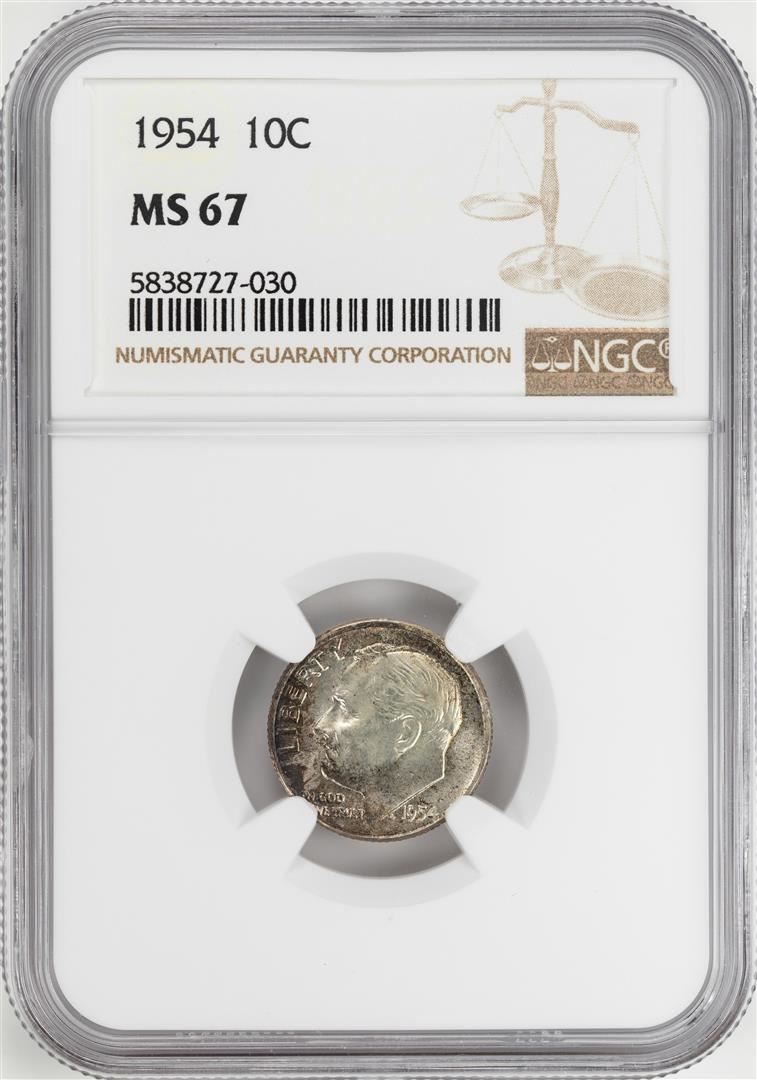 One 1954 Roosevelt Dime Coin NGC MS67. NGC Certified.