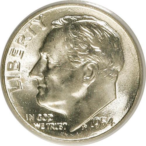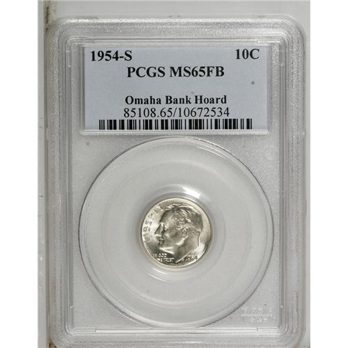 1954-S 10C MS65 Full Bands PCGS. Ex: Omaha Bank Hoard.