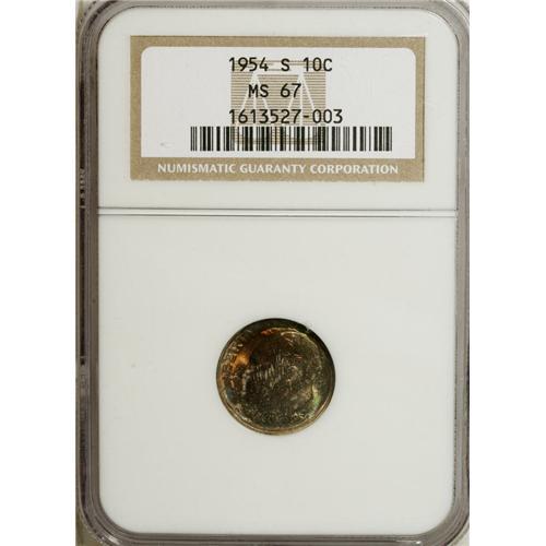 1954-S 10C MS67 NGC. NGC Census: (534/2). PCGS Pop
