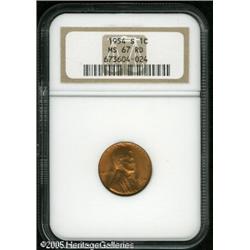 <B>1954-S 1C MS67 Red NGC.</B></I> Well struck with flaming orange-red luster and just a couple of small blemishes on the reverse.<BR><I>From The Kim Mitchell Collection, Part Two.</B></I> Lot:5564