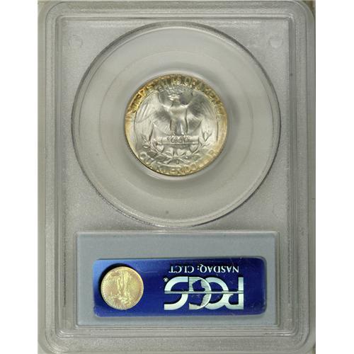 1954-S 25C MS67 PCGS. Arcs of gold-orange and peach-ro