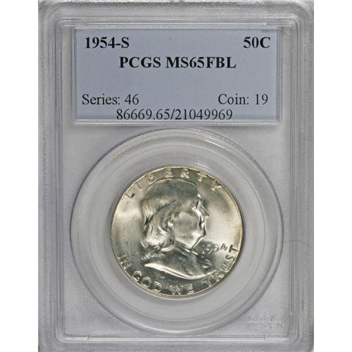 <B>1954-S 50C MS65 Full Bell Lines PCGS.</B></I> Medium honey-gold patina enriches this suitably struck and fully lustrous Gem. The fields are nearly immaculate, and the appeal is undeniable.<BR><BR><b>Shipping:</b> Coin/Currency (<a target="_blank" href="http://www.heritageauctions.com/common/shipping.php">view shipping information</a>)