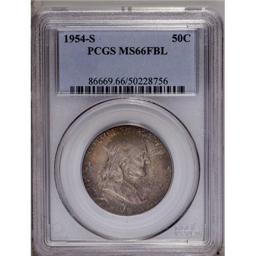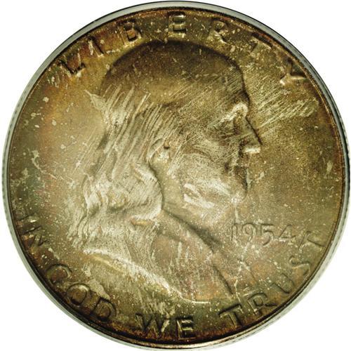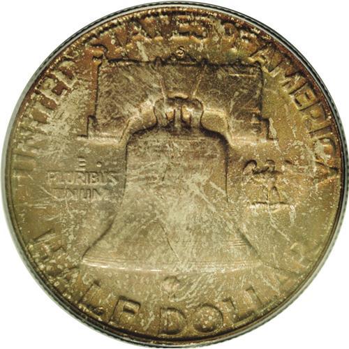 <B>1954-S<50C> MS66 Full Bell Lines PCGS.</B></I> Attractive surfaces with delightful amber to deep russet patina. The bell lines are complete, although somewhat masked by the toning. Population: 51 in 66, 1 finer (2/06).