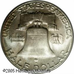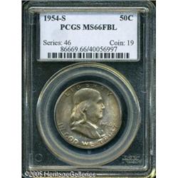 <B>1954-S 50C MS66 Full Bell Lines PCGS.</B></I> This coin has gorgeous teal and gold toning on both sides, the color is not deep or intense, but typically iridescent and attractive. Excellent surfaces throughout, and a sharp strike to boot, a combination that any collector will appreciate. Population: 40 in 66, 1 finer (1/05). Lot:8304
