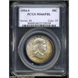 <table><tr><td><TABLE cellSpacing=0 cellPadding=0 width="100%" bgColor=#000000 border=0><TBODY> <TR><TD width="100%"><TABLE cellSpacing=1 cellPadding=3 width="100%" border=0><TBODY><TR><TD width="100%" bgColor=#79735c><FONT face=arial color=#ffffff size=3><B>Description</B> </FONT></TD></TR><TR><TD width="100%" bgColor=#ffffff><FONT face=arial size=2><B>1954-S 50C MS66 Full Bell Lines PCGS.</B></I> Speckles of tobacco-brown and apple-green patina endow this lustrous and exquisitely preserved premium Gem. While the 1954-S is readily available in abraded Mint State grades, it becomes decidedly rare this close to pristine. Crisply struck and original. Population: 27 in 66, 1 finer (10/03). </FONT></TD></TR></TBODY></TABLE></TD></TR></TBODY></TABLE><BR><A name=PricesRealized></A><TABLE cellSpacing=0 cellPadding=0 width="100%" bgColor=#000000 border=0><TBODY><TR><TD width="100%"><TABLE cellSpacing=1 cellPadding=3 width="100%" border=0><TBODY><TR><TD width="100%" bgColor=#79735c><A name=PR><FONT face=arial color=#ffffff size=3><B>Previous Prices from Heritage Auctions</B> </FONT></A></TD></TR><TR><TD bgColor=#f6f6ed><TABLE cellSpacing=0 cellPadding=0 width="100%" border=1><TBODY><TR><TD align=middle width="33%"><B>Date</B></TD><TD align=middle width="33%"><B>Service</B></TD><TD align=middle width="33%"><B>Price</B></TD></TR><TR bgColor=whitesmoke><TD width="33%"><B>09/20/2003</B></TD><TD width="33%">PCGS</TD><TD width="33%">$4,140.00</TD></TR><TR bgColor=whitesmoke><TD width="33%"><B>01/11/2003</B></TD><TD width="33%">PCGS</TD><TD width="33%">$4,830.00</TD></TR><TR bgColor=whitesmoke><TD width="33%"><B>01/11/2003</B></TD><TD width="33%">PCGS</TD><TD width="33%">$4,830.00</TD></TR><TR bgColor=whitesmoke><TD width="33%"><B>10/06/2001</B></TD><TD width="33%">PCGS</TD><TD width="33%">$2,300.00</TD></TR><TR bgColor=whitesmoke><TD width="33%"><B>10/06/2001</B></TD><TD width="33%">PCGS</TD><TD width="33%">$3,335.00</TD></TR><TR bgColor=whitesmoke><TD width="33%"><B>10/06/2001</B></TD><TD width="33%">PCGS</TD><TD width="33%">$3,335.00</TD></TR><TR bgColor=whitesmoke><TD width="33%"><B>05/31/2001</B></TD><TD width="33%">PCGS</TD><TD width="33%">$6,325.00</TD></TR><TR bgColor=whitesmoke><TD width="33%"><B>03/01/2001</B></TD><TD width="33%">PCGS</TD><TD width="33%">$1,265.00</TD></TR><TR bgColor=whitesmoke><TD width="33%"><B>03/01/2001</B></TD><TD width="33%">PCGS</TD><TD width="33%">$1,265.00</TD></TR><TR bgColor=whitesmoke><TD width="33%"><B>01/01/2001</B></TD><TD width="33%">PCGS</TD><TD width="33%">$2,185.00</TD></TR><TR bgColor=whitesmoke><TD width="33%"><B>05/01/1999</B></TD><TD width="33%">PCGS</TD><TD width="33%">$1,237.00</TD></TR><TR bgColor=whitesmoke><TD width="33%"><B>05/01/1999</B></TD><TD width="33%">PCGS</TD><TD width="33%">$1,237.00</TD></TR></TBODY></TABLE></TD></TR><TR><TD bgColor=#ffffff><FONT face=arial size=1 ?>PLEASE NOTE: All prices realized reflect the final hammer price PLUS the buyer's premium in auctions that charge a buyer's premium. Each item has a notation at the top of the listing indicating whether that lot included a buyer's premium. Example: A item that sells with a final hammer price of $100 and a 20% buyer's premium will display with a price realized of $120. All information listed is intended to be as accurate as possible, but errors are possible. Please use this guide carefully and inform us of any inaccuracies. </FONT></TD></TR></TBODY></TABLE></TD></TR></TBODY></TABLE><BR><TABLE cellSpacing=0 cellPadding=0 width="100%" bgColor=#000000 border=0><TBODY><TR><TD width="100%"><TABLE cellSpacing=1 cellPadding=3 width="100%" border=0><TBODY><TR><TD width="100%" bgColor=#79735c colSpan=6><FONT face=arial color=#ffffff size=3><B>Price Guide*</B> </FONT></TD></TR><TR bgColor=#f6f6ed><TD align=middle><B>Grade</B> </TD><TD align=middle><B>Coin World<BR>(Trends)</B> </TD><TD align=middle><B>Numismedia<BR>Retail</B> </TD><TD align=middle><B>Numismedia<BR>Wholesale</B> </TD><TD align=middle><B>Coin<BR>Universe</B> </TD><TD align=middle><B>Heritage<BR>Value Index</B> </TD></TR><TR bgColor=#ffffff><TD align=middle>65</TD><TD align=right>---</TD><TD align=right>$375.00</TD><TD align=right>$300.00</TD><TD align=right>$400.00</TD><TD align=right>$275.00</TD></TR><TR style="FONT-WEIGHT: bold" bgColor=#cccfdd><TD align=middle>66</TD><TD align=right>---</TD><TD align=right>---</TD><TD align=right>$2,475.00</TD><TD align=right>$5,750.00</TD><TD align=right>$4,025.00</TD></TR><TR bgColor=#ffffff><TD align=middle>67</TD><TD align=right>---</TD><TD align=right>---</TD><TD align=right>---</TD><TD align=right>---</TD><TD align=right>---</TD></TR><TR bgColor=#ffffff><TD colSpan=6><FONT size=1>*All information listed is intended to be as accurate as possible, but errors are possible. No item may be returned or refused based on this information which is provided as a service to our customers. You should contact each pricing source directly to determine the accuracy of this information. </FONT></TD></TR></TBODY></TABLE></TD></TR></TBODY></TABLE><BR><TABLE cellSpacing=0 cellPadding=0 width="100%" bgColor=#000000 border=0><TBODY><TR><TD width="100%"><TABLE cellSpacing=1 cellPadding=3 width="100%" border=0><TBODY><TR><TD width="100%" bgColor=#79735c><FONT face=arial color=#ffffff size=3><B>Population Guide</B> </FONT></TD></TR><TR bgColor=#ffffff><TD align=middle><!-- Begin Output of Population Grid--><TABLE cellSpacing=0 cellPadding=0 width="100%" border=0><TBODY><TR><TD vAlign=center><TABLE cellSpacing=0 width="100%" border=1 cellsadding="3"><TBODY><TR><TD vAlign=center><TABLE cellSpacing=0 cellPadding=3 width="100%" border=1><TBODY><TR><TD vAlign=center align=middle bgColor=#f0f1e8 colSpan=2 <CENTER><FONT face=Arial size=2><B>PCGS Pop </B></FONT><CENTER></CENTER></TD><TD vAlign=center align=middle bgColor=#f0f1e8 colSpan=2><CENTER><FONT face=Arial size=2><B>NGC Pop</B></CENTER></FONT></TD></TR><TR><TD vAlign=center><FONT face=Arial size=2>(66)</FONT> </TD><TD vAlign=center align=right><FONT face=