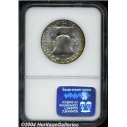 <table><tr><td><table><tr><td>1954-S 50C MS67 NGC. Very scarce in Superb condition, this is a thickly frosted example that is an interesting study in contrasts. The obverse displays deep golden-scarlet toning with some undertones of lime-green, while the reverse is mostly untoned with golden color around the margins. Population: 5 in 67, 0 finer (3/04). <BR><BR><B>Important notice:</B> Heritage usually auctions material at the rate of 200-250 lots per hour. On some occasions eBay Live bid software or the Internet may not be able to keep up with the pace of the auction. We recommend placing a realistic absentee bid now as insurance to avoid disappointment. Occasionally the auctioneer may eliminate or reject an eBay Live bid, and the auctioneer may also reopen a lot after the close of the eBay live bidding (usually because we missed an audience bid), and may reject your bid even if it shows you as the winning bidder. By bidding via eBay Live, you agree that Heritage may award the lot to another bidder at its sole discretion under the circumstances described above or any other reasonable circumstances. Since eBay bids are not shown to us until we open the lot on the floor, we treat those bids just like floor bids. In most cases the floor responds before the eBay bid is presented to us, due to Internet lag time, so for consistency we have made it a policy that floor bids are always considered first over tie eBay live bids. Also please note that all Heritage lots purchased through eBay Live carry a 20% Buyer's Premium. Please make sure you read the Terms and Conditions before you bid. <BR><BR><B>IMPORTANT ANNOUNCEMENT ABOUT RESERVES:</B> Heritage now divulges all reserves on its web site 7 days before every auction. If you want to know whether the reserve on this lot has been met, and if not, what the reserve amount is, please visit this lot page on the HeritageCoin.com web site, or email: bid@HeritageGalleries.com </span></font></td></tr></table></td></tr></table>