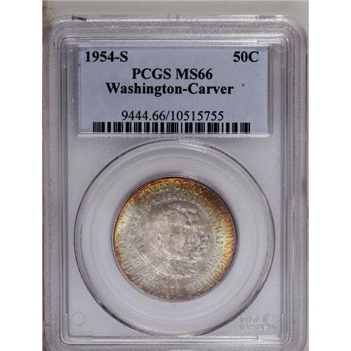 <B>1954-S<50C> Washington-Carver MS66 PCGS.</B></I> Bronze and red peripheral toning appears on both sides, though it is more intense on the obverse. Lustrous and boldly struck.