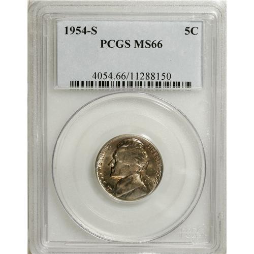 1954-S 5C MS66 PCGS. PCGS Population (43/0). NGC C