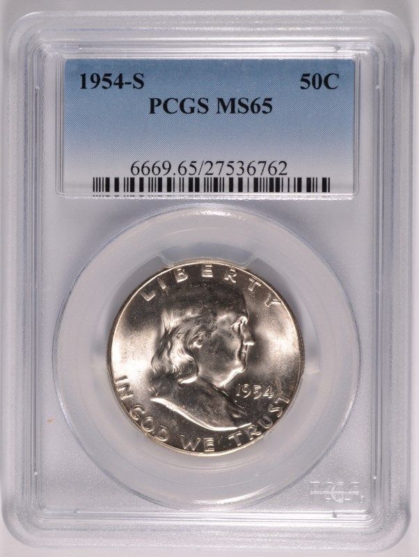 1954-S FRANKLIN HALF DOLLAR, PCGS MS-65 GEM