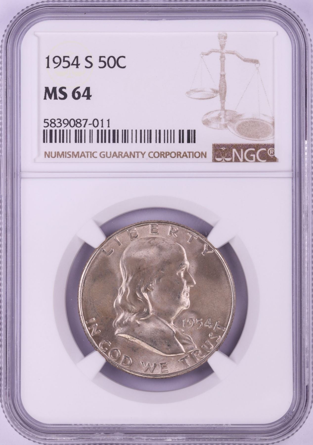 One 1954-S Franklin Half Dollar Coin NGC MS64.