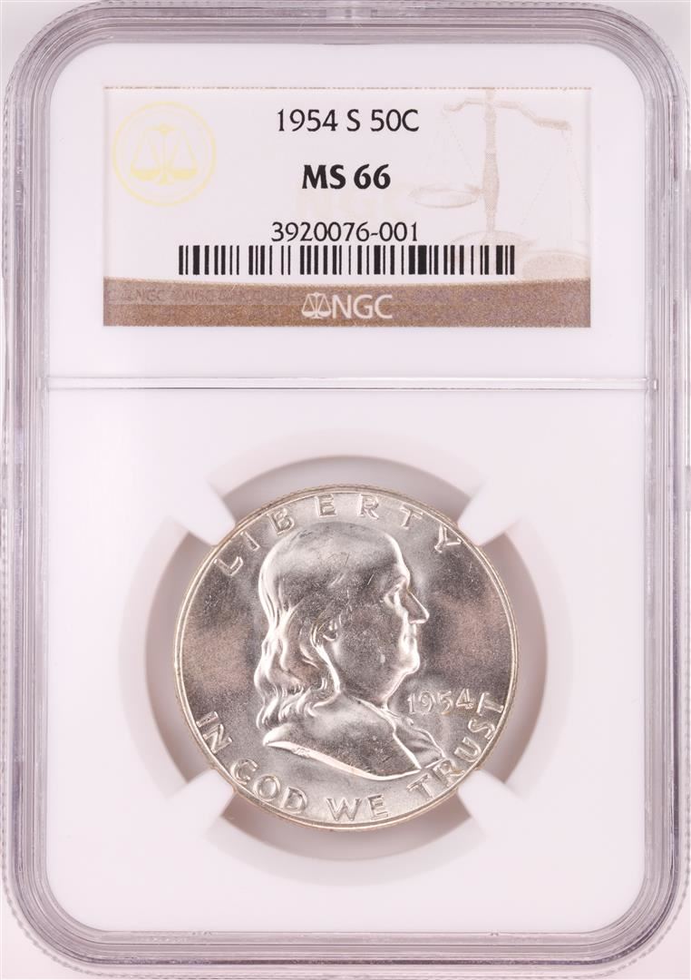 One 1954-S Franklin Half Dollar Coin NGC MS66. NGC Certified.