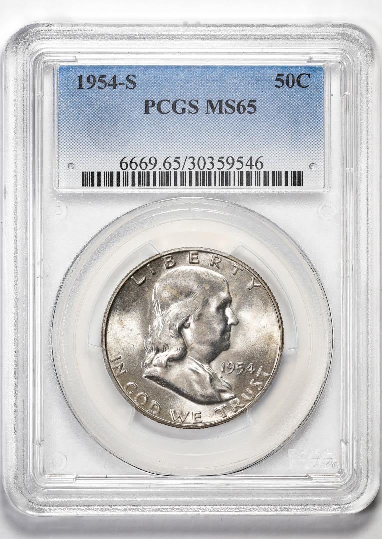 One 1954-S Franklin Half Dollar Coin PCGS MS65. PCGS Graded.
