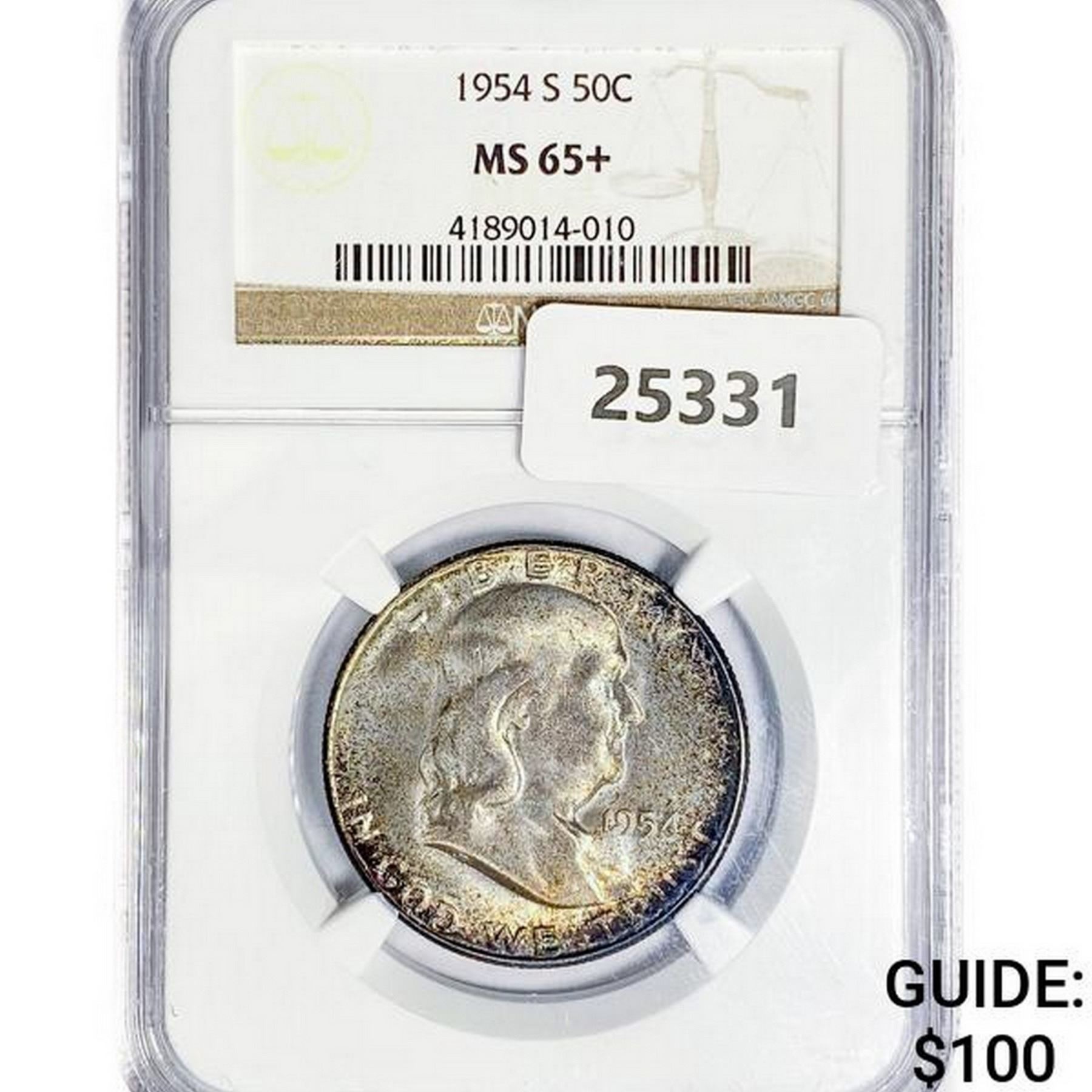 1954-S Franklin Half Dollar NGC MS65+ RED