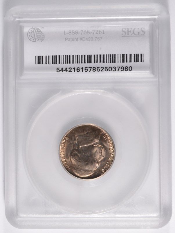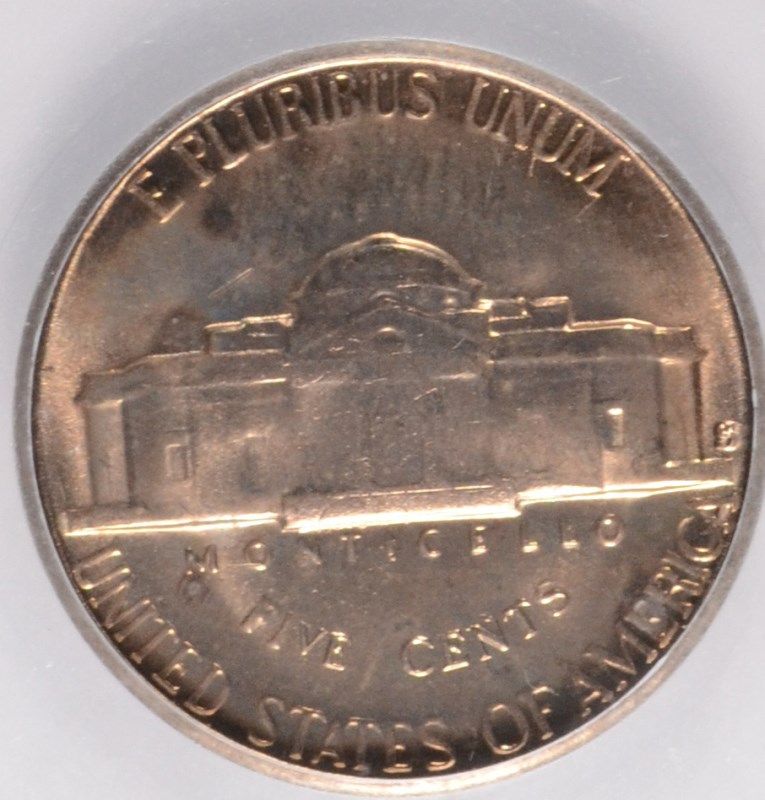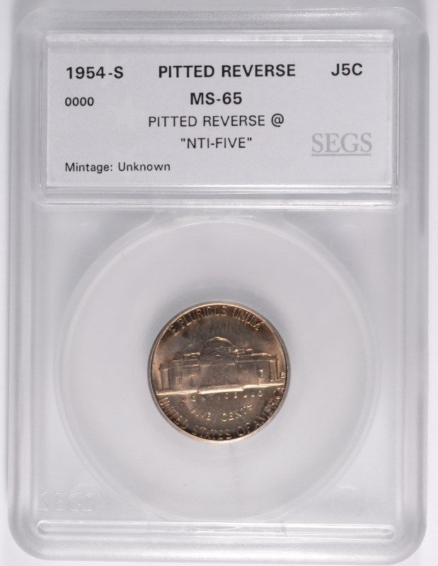 1954-S JEFFERSON NICKEL, SEGS MS-65 GEM, RARE MINT ERROR "NTI-FIVE"
