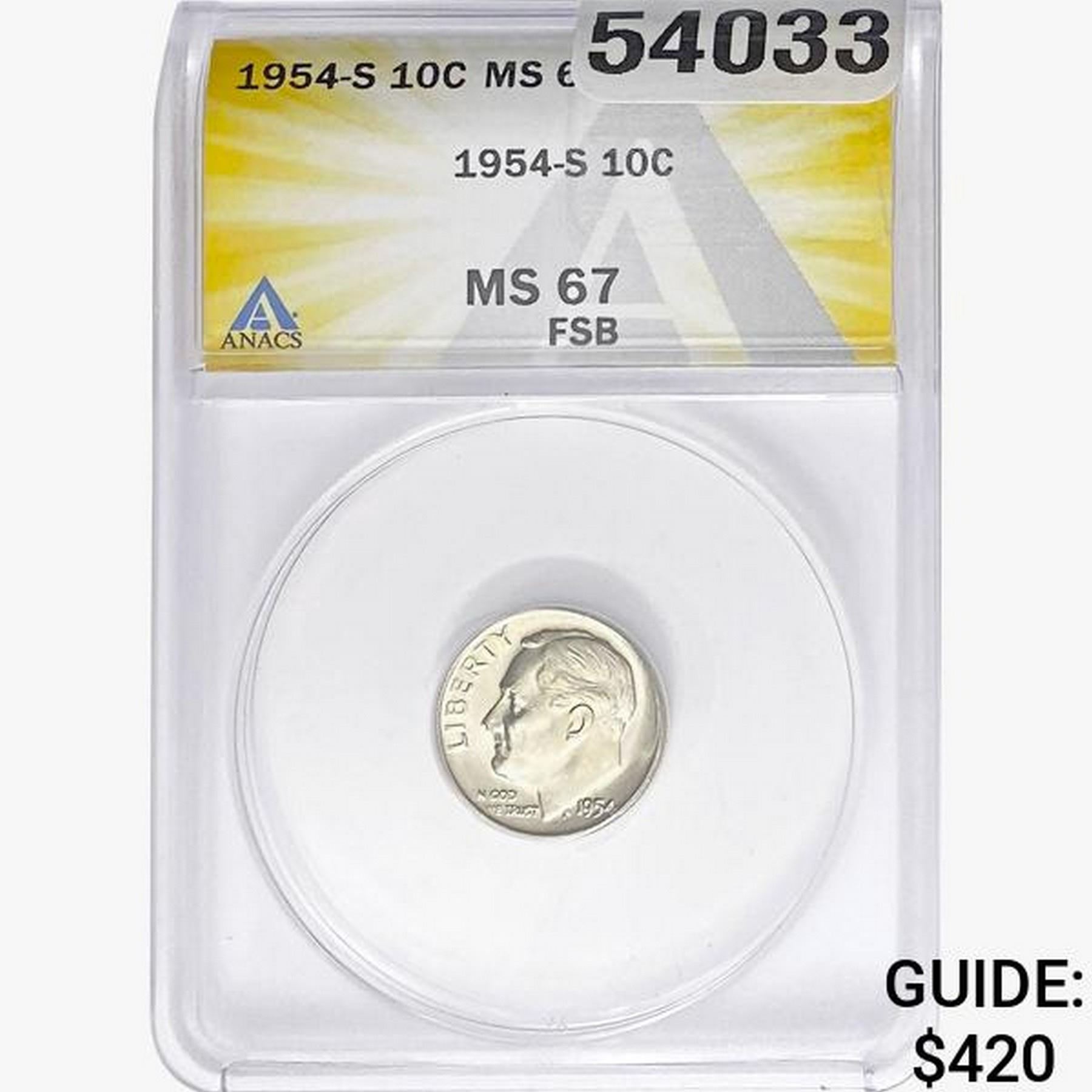 1954-S Roosevelt Dime ANACS MS67 FSB