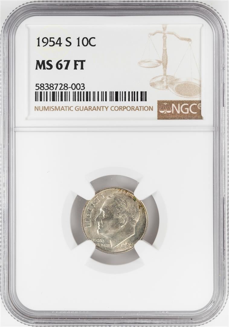 One 1954-S Roosevelt Dime Coin NGC MS67FT. NGC Certified.
