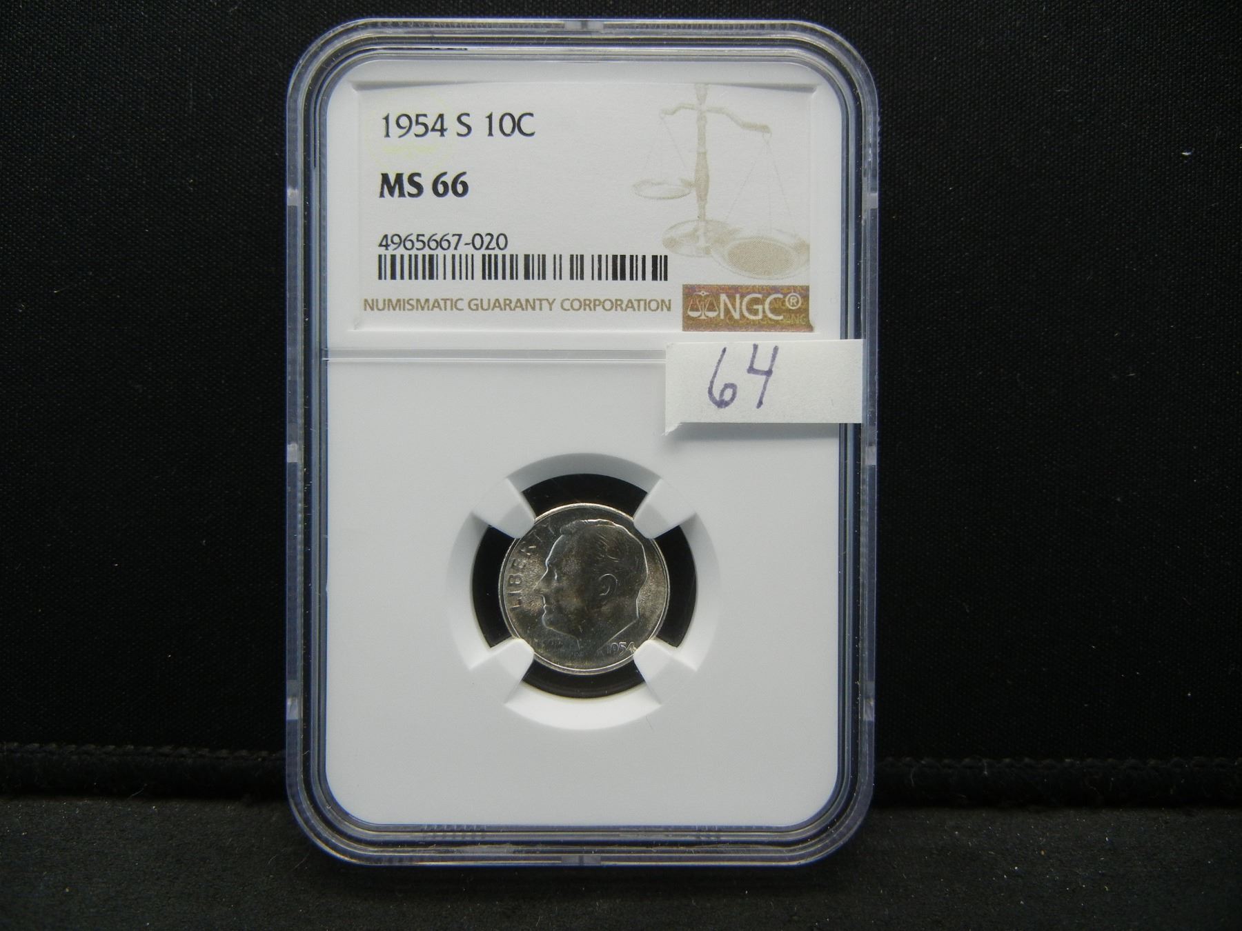 1954 S Roosevelt Dime NGC MS66