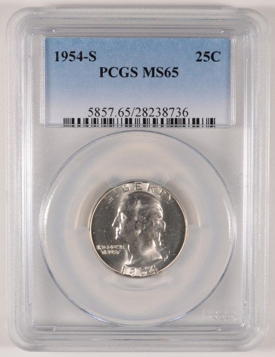 1954-S WASHINGTON QUARTER, PCGS MS-65 GEM WHITE