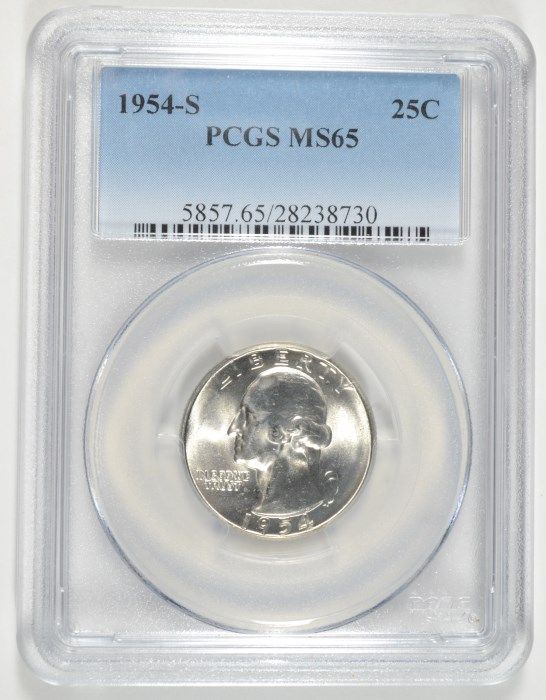 1954-S WASHINGTON QUARTER, PCGS MS-65 GEM WHITE