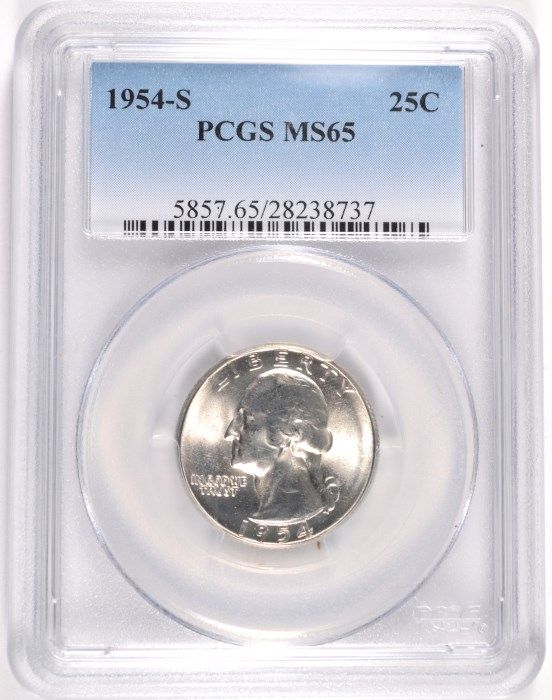 1954-S WASHINGTON QUARTER, PCGS MS-65 GEM WHITE