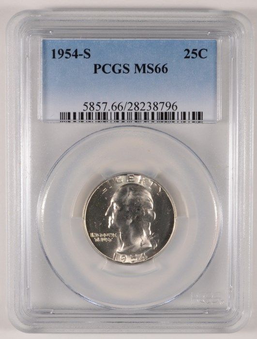 1954-S WASHINGTON QUARTER, PCGS MS-66 SUPERB WHITE