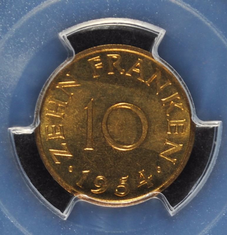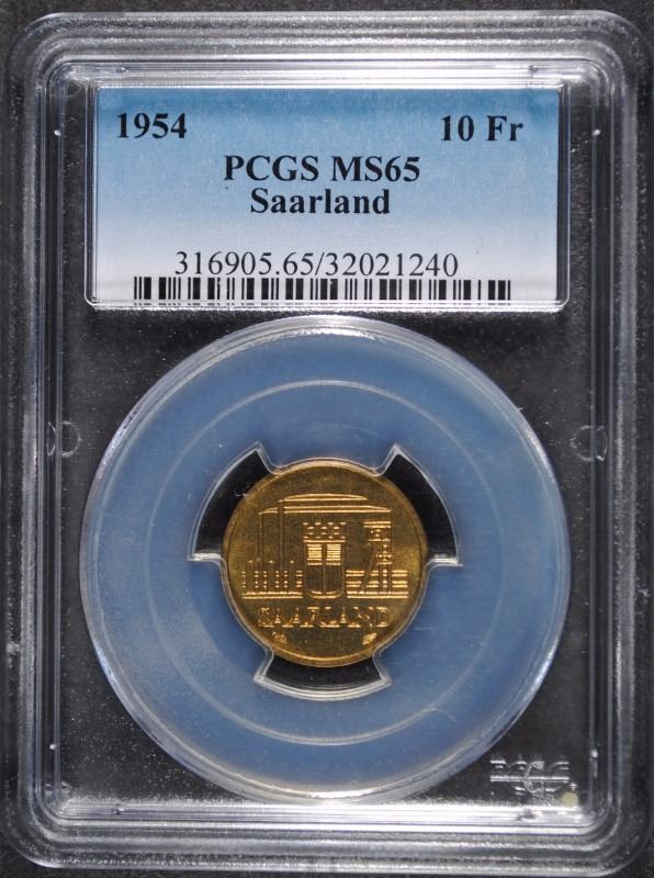 SAARLAND ONLY PRODUCED COINS FOR TWO YEARS AND THE COINS ARE EXTREMELY RARE IN HIGHER GRADES, PCGS HAS GRADED LESS THAN 100 COINS IN ALL GRADES! ESTIMATE, SILVERTOWNE AUCTIONS IS RANKED ONE OF THE BEST INTERNET AUCTIONS *PCGS#316905* ESTIMATE, $170.00 TO $190.00
