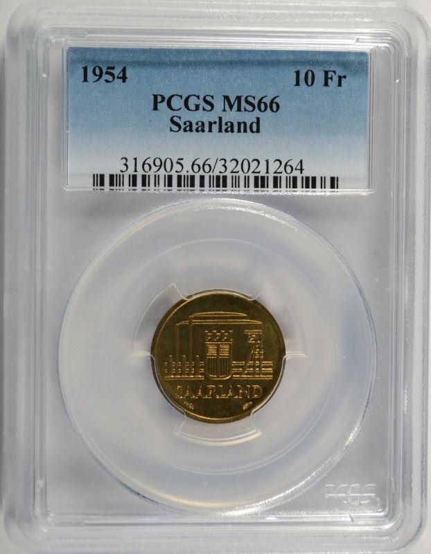 SAARLAND ONLY PRODUCED COINS FOR TWO YEARS AND THE COINS ARE EXTREMELY RARE IN HIGHER GRADES, PCGS HAS GRADED LESS THAN 100 COINS IN ALL GRADES! ESTIMATE, SILVERTOWNE AUCTIONS IS RANKED ONE OF THE BEST INTERNET AUCTIONS