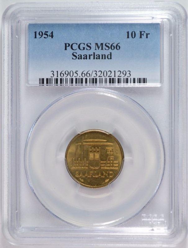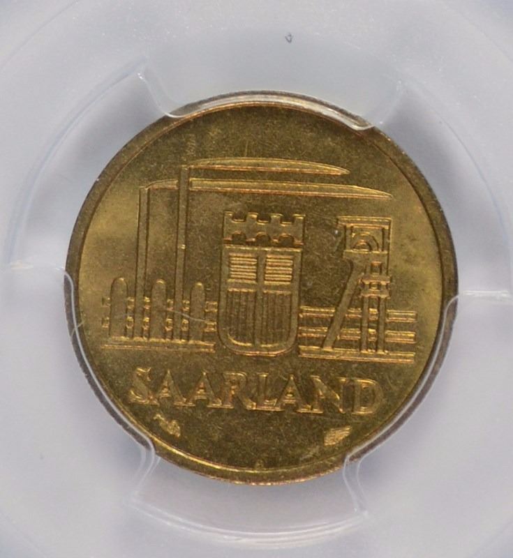 SAARLAND ONLY PRODUCED COINS FOR TWO YEARS AND THE COINS ARE EXTREMELY RARE IN HIGHER GRADES, PCGS HAS GRADED LESS THAN 100 COINS IN ALL GRADES! ESTIMATE, SILVERTOWNE AUCTIONS IS RANKED ONE OF THE BEST INTERNET AUCTIONS ESTIMATE, $200.00 TO $250.00