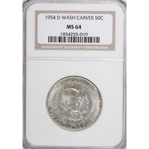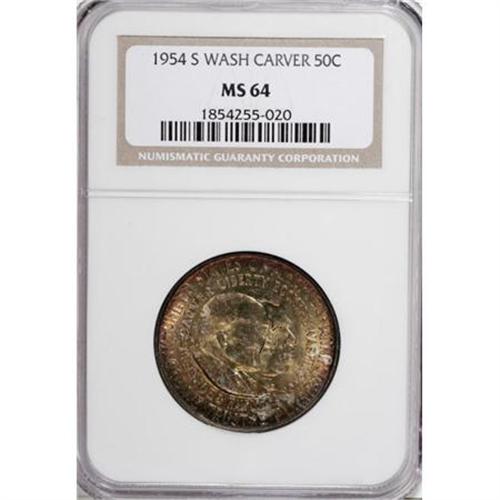 <B>1954 50C Washington-Carver PDS Set. 1954 Washington Carver MS65 NGC; 1954-D Washington Carver MS64 NGC; </B></I>and a <B>1954-S Washington Carver MS64 NGC. </B></I><BR><I>From The Frank DuVall Collection of U.S. Commemoratives.</B></I><BR><BR><b>Shipping:</b> Coins & Currency (<a target="_blank" href="http://www.heritageauctions.com/common/shipping.php">view shipping information</a>)