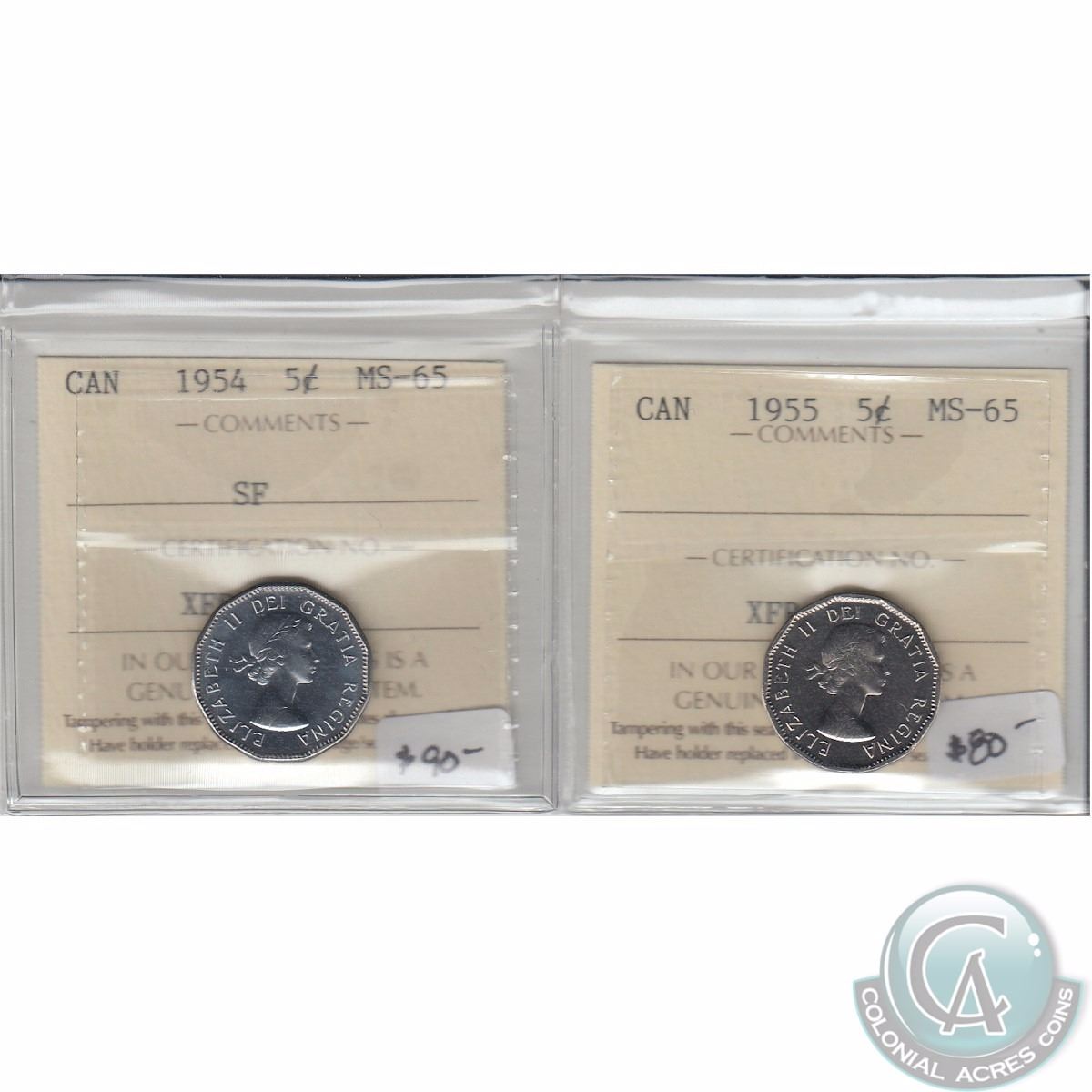 1954 SF & 1955 Canada 5-cent ICCS Certified MS-65 (2pcs)