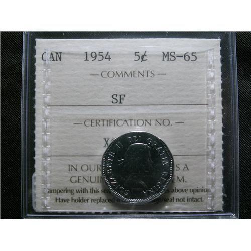 1954 SF 5¢ ICCS MS65. Fully struck with full luster. A true "Gem"