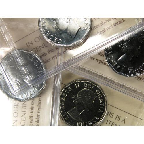 Canada Five Cents 1954 Shoulder Fold, ICCS MS-65. Plus 1952 and 1953 Shoulder Fold, both ICCS MS-64 and 1956 PL-64 Cameo Corrosion