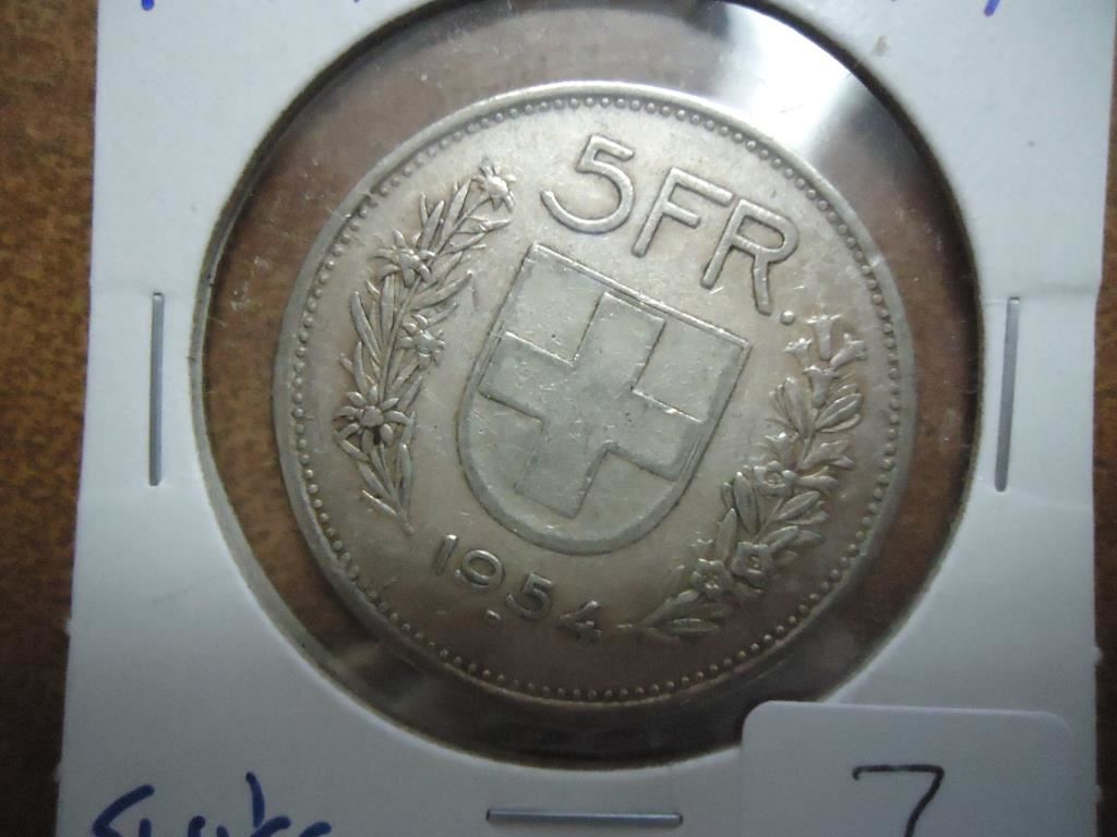 1954 SWISS SILVER 5 FRANC .4027 OZ. ASW