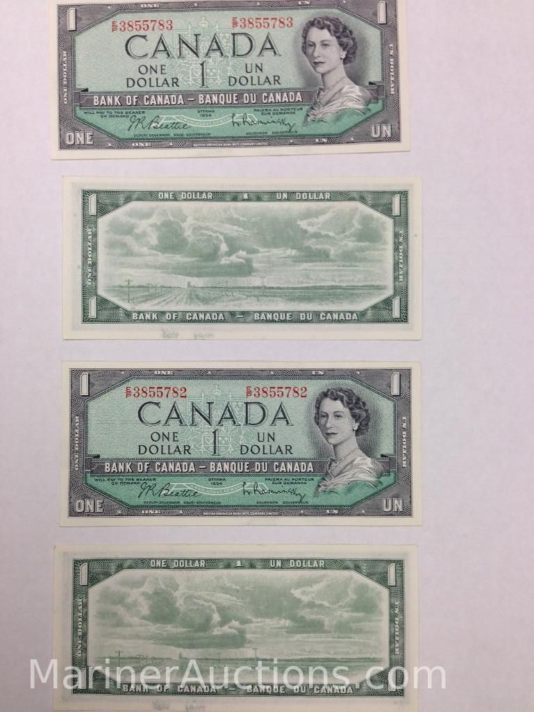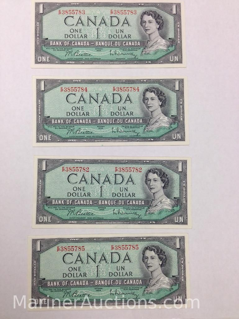 1954 Sequential Uncirculated Canadian One Dollar Bank Notes (782-785)