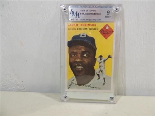 1954 TOPPS #10 GRADED BASEBALL CARD JACKIE ROBINSON. GRADED SMAGRADING #112112 MINT 9. AS SHOWN. VIEW PICTURE FOR DETAIL.