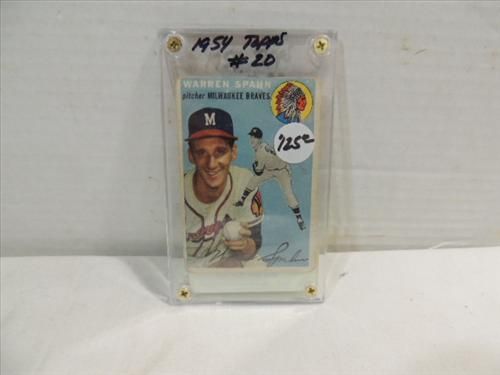 1954 TOPPS #20 BASEBALL PLAYER CARD WARREN SPAHN. AS SHOWN. VIEW PICTURE FOR DETAIL.