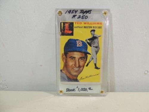 1954 TOPPS #250 BASEBALL PLAYER CARD TED WILLIAMS. DAMAGE ON BACK OF CARD. AS SHOWN. VIEW PICTURE FOR DETAIL.
