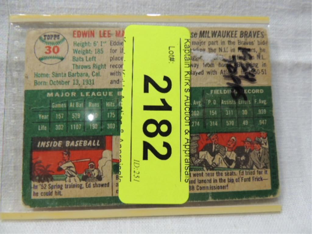 1954 TOPPS #30 BASEBALL PLAYER CARD ED MATHEWS. AS SHOWN. VIEW PICTURE FOR DETAIL.