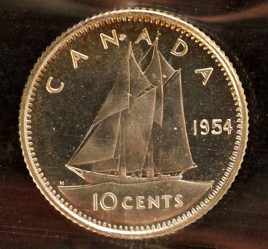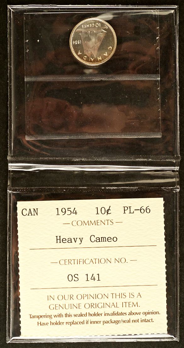 1954 Ten Cents, ICCS PL-66, Heavy Cameo