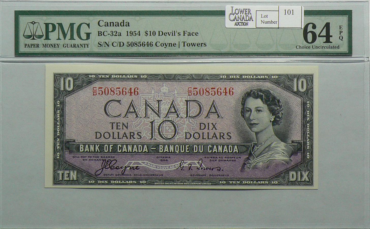 1954 Ten Dollars Devil's Face, BC-32a, PMG UNC-64, Coyne Towers, serial C/D5085646.