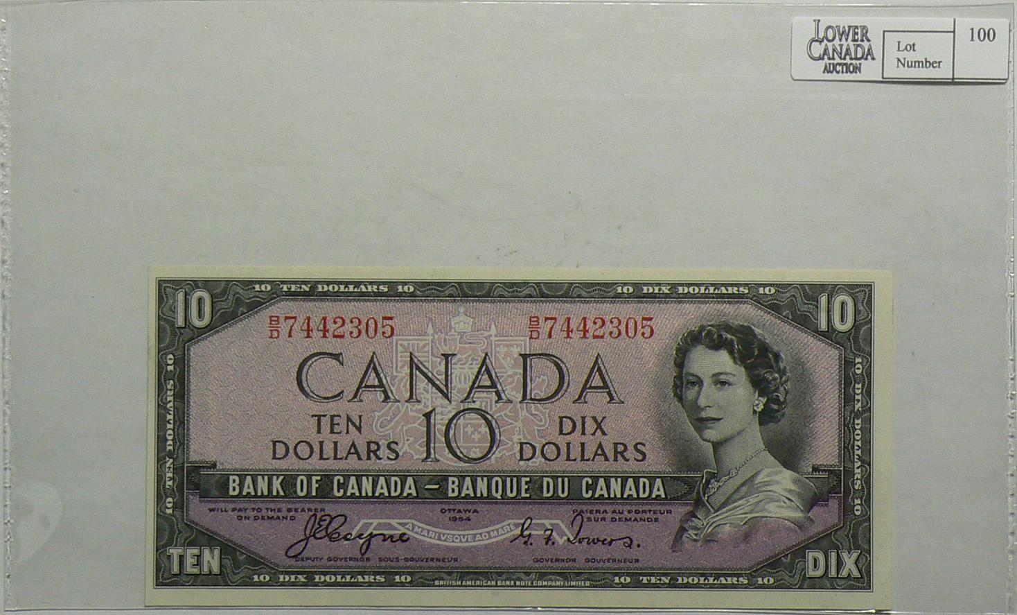 1954 Ten Dollars Devil's Face, BC-32a, UNC, Coyne Towers, serial B/D7442305.