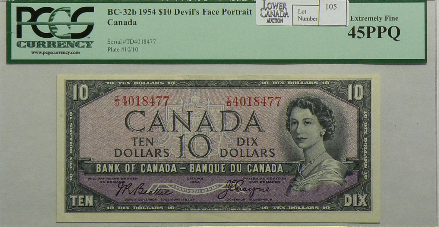 1954 Ten Dollars Devil's Face, BC-32b, PCGS EF-45 PPQ, Beattie Coyne, serial I/D4018477.