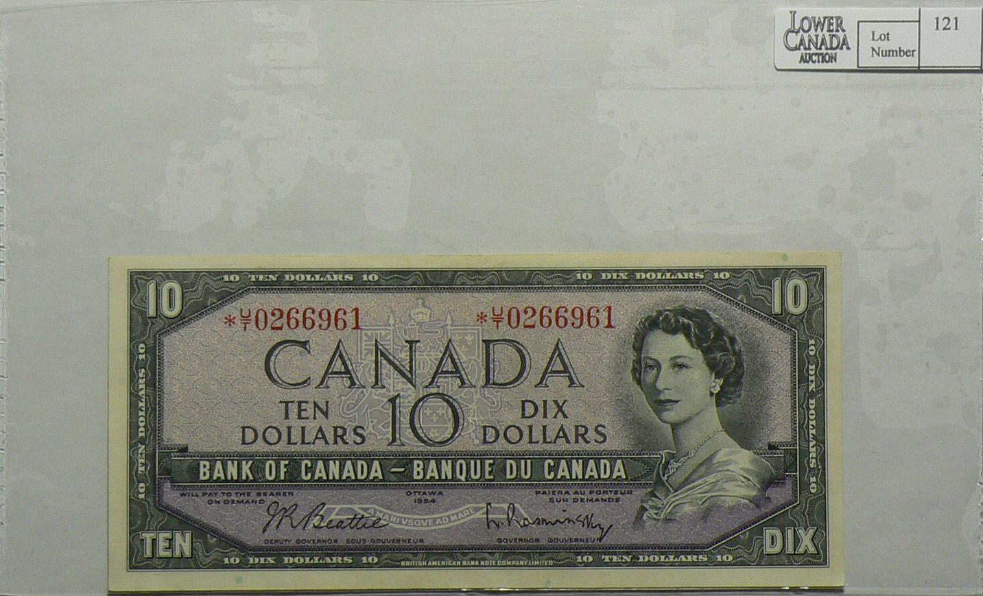1954 Ten Dollars Replacement Modified, BC-40bA, VF/EF, Beattie Rasminsky, serial *U/T0266961.