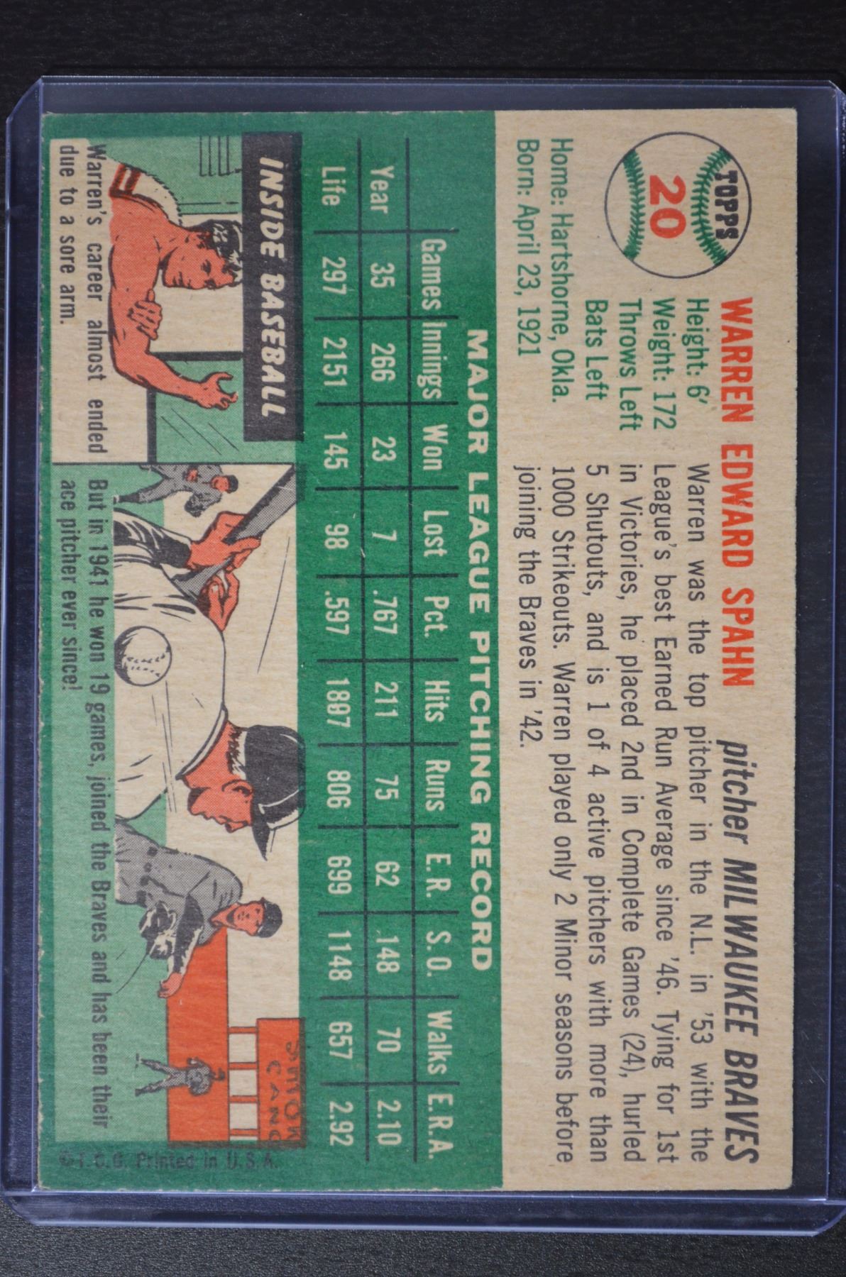 1954 Topps #20 Warren Spahn