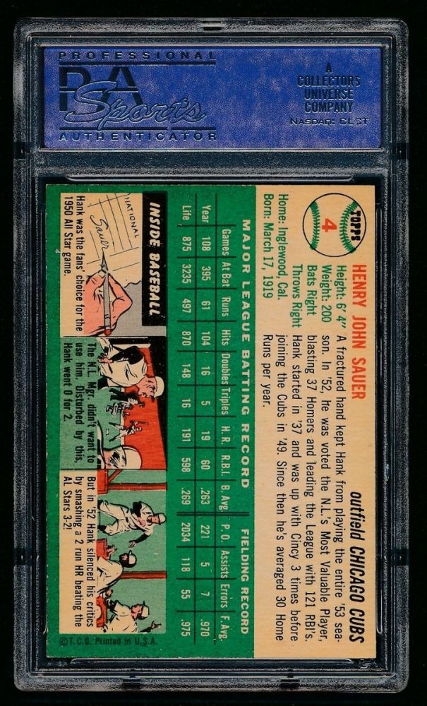 1954 Topps #4 Hank Sauer (Cubs).